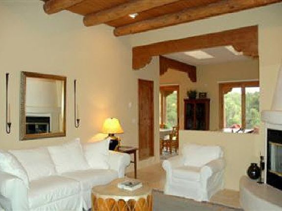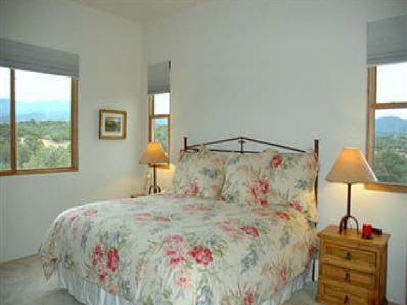 Gorgeous home in lovely Las Estrellas located on the Northwest pinon covered hills just minutes from downtown Santa Fe. This 3 bedroom, 2 bath home allows easy access to 599 by pass and backs up to a green belt. The views of the Sangre de Cristo mountains from the back patio are beautiful!! Home includes wood burning fireplace and vigas in the living room with an open floor plan to kitchen and dining room. Home wired for security. The Las Estrellas community includes paved roads, walking trails and a common area park with a basketball court. *********HOME LOCATED ON PREMIUM LOT********** Homes in this development go quickly, don't miss your chance!