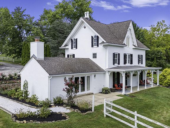Beautiful farmhouse originally built in the late 1700s is nestled in the heart of a picturesque landscape. Property is part of the ACT 319 designation and offers super low taxes under $5200.00! Inside you are greeted by the warmth of random width hardwood floors that flow throughout the interior, creating a timeless ambiance. The cozy Great Room has a large wood burning fireplace with marble surrounds, flanked by built ins and large french doors that open to the patio offering views of the gardens and pastures. Random width wood floors, pocket doors, built in Bookcases and fireplaces are only some of the farmhouse amenities here. The kitchen opens to a large dining area and connects to a sunroom and outdoor stone patio. Upstairs on the second floor, the primary suite and completely renovated en suite bathroom offer a serene place to unwind at the end of the day. A second bedroom and hall bath as well as laundry closet complete the second level. The third level offers a full bath and 3 additional bedrooms . A family room/ den area connects the main home to the renovated carriage house on the first level with the option of separation by closing the door. This room has exposed beams and a large historic wood burning fireplace. The carriage house has its own private entrance and lots of great space perfect . The main floor has a large closet for storage and utilities, a half bath, and an open floor plan kitchen/ living / office space. Upstairs the primary suite is spacious and bright with sweeping views on multiple sides. A full bathroom and additional bedroom with laundry gives you everything you need and more! On the property, the expansive pastures surrounding the property offer endless possibilities for those with an equestrian or farming passion, providing ample space for horses or agricultural endeavors. A standout feature of this estate is the meticulously maintained Stone bank barn. The barn provides abundant storage and potential for various uses. A newly added screened porch area on the first level of the barn is perfect to enjoy the evenings after a long day. Inside the first level of the barn are 12 horse stalls, a tack room, a feed storage room, heated wash stall, powder room, gorgeous stone office, a craft or project room, a large storage room for equipment and the detached garage. The 2 story floored second level of the barn with access to the second level deck overlooking a sand riding arena and views of the sunsets. This space offers so many possibilities! Some upgrades done here include rebuilding and repairing the roof line, new gutters and downspouts, exterior chimney rebuilt with new liner, new primary bathroom, water purification system, full radon system, freshly painted inside and out. New Septic Pump, new well pump, new washer dryer in main house and reported outdoor stone firepit. The cottage was completely renovated from top to bottom, mini split systems added and more. See attached documents for more information.