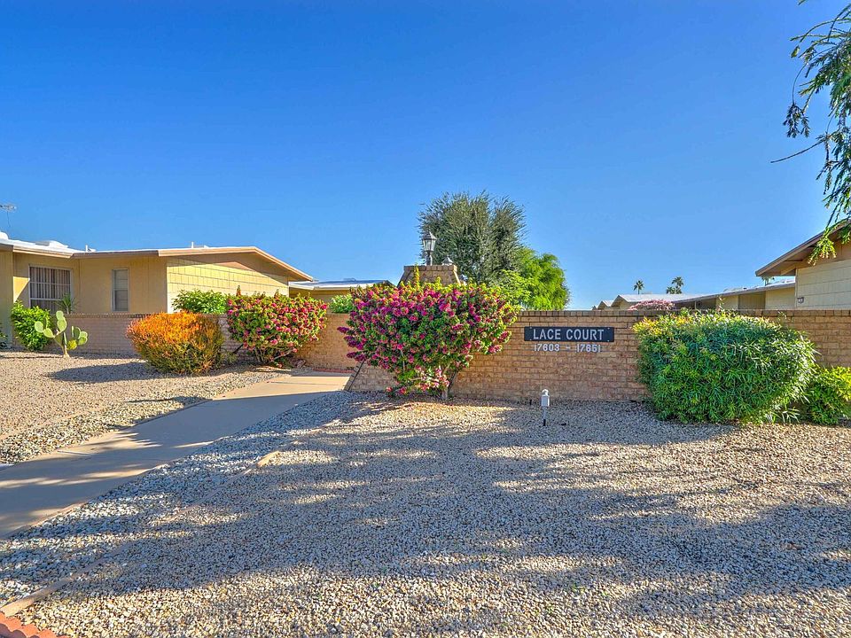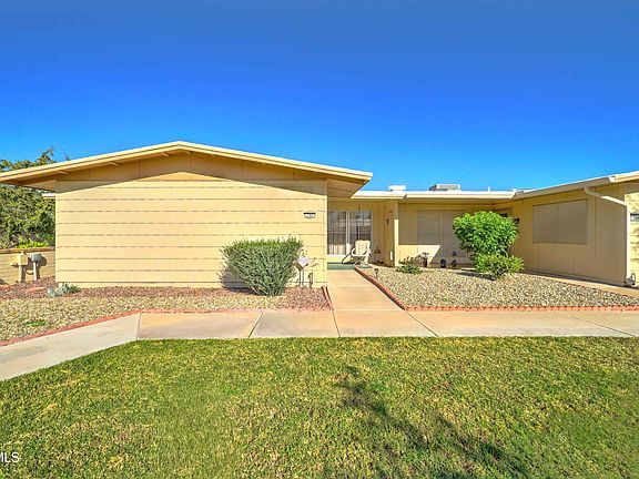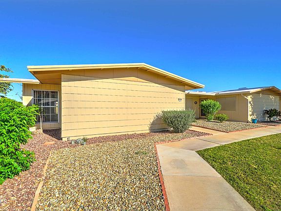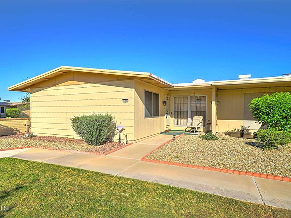 Beautiful, well-kept 2 Bedrooms with walk-in closets, 1 3/4 baths with split bedrooms. Nice kitchen, separate dining room, large private rear patio, nice front patio to sit outside and enjoy the grass courtyard and sun. Single garage with automatic opener. eight nearby golf courses to get in all the games you desire. Five recreation centers close to you. Safeway grocery and CVS Drugs are conveniently located.