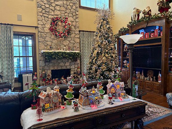 A NEW "HOME FOR THE HOLIDAYS" THAT IS PERFECT FOR ENTERTAINING OR FAMILY GATHERINGS! Step into a realm of refined elegance with this magnificent luxury property, nestled on tranquil Lake Tyler. Boasting 4 spacious bedrooms, 4 ½ impeccably designed bathrooms, and a 4-car garage, this residence offers an unparalleled standard of living. Upon entering, you'll be greeted by a grand open-concept layout, blending the living, dining, and kitchen areas. The living space exudes sophistication with high ceilings and luxurious finishes, providing the perfect atmosphere for both intimate gatherings and grand entertaining. The gourmet kitchen is a chef's dream, equipped with state-of-the-art appliances, custom cabinetry, and a generous island that makes meal preparation a joy. The private office offers a serene space to work from home. For entertainment, the media room provides a captivating cinematic experience, ideal for movie nights. The primary suite is a haven of tranquility, featuring a lavish ensuite bath, complete with a soaking tub, separate shower, and dual vanities. Each additional bedroom is thoughtfully designed, each with it’s own ensuite bath, ensuring comfort and privacy for all. The exterior of the home is a striking showcase of brick and stone, exuding timeless appeal and durability. The concrete driveway & security gate offer a polished entrance to the property, supporting the home's luxury aesthetic while providing ample parking space. The outdoor living spaces offer beautifully landscaped gardens. Walkway leads to boathouse with 2 stalls, large deck for entertaining + enclosed room with kitchenette. Whether basking in the sun by day or enjoying serene evenings, this property is the epitome of luxurious indoor-outdoor living. This Lake Tyler home reflects sophistication and style at every turn, promising an enviable lifestyle to its new owner. Indulge in the finest living experience that blends comfort, functionality, and elegance. Easy access to DFW area.