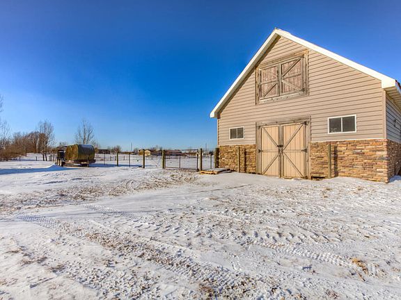 EXTREMELY RARE FIND! This is the sports/animal/fishing enthusiast's dream property! Fully stocked and meticulously maintained pond, large machine shed/shop, restored turn-of-century barn, heated dog kennels, large machine shed, chicken coop, professional fencing surrounding 4 pasture rotation areas, outdoor sauna, and a meandering creek. Home features 3BR, 2ba, and many updates including newer kitchen, bath, flooring, trim, solid core doors, electrical, plumbing, electric fireplace and hvac. You will love the large garage/shop with wood-burning fireplace.