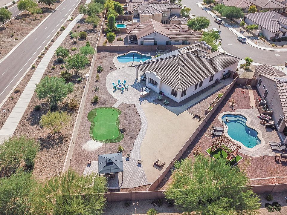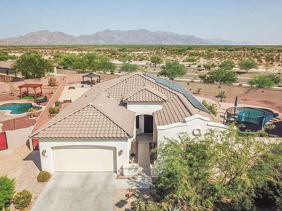 This Gorgeous Home HAS IT ALL. 3 Bed, 2 Bath + Family Room + Den + Bonus Room (or optional Bed 4 w/closet) + Optional Dining Room (or Living Room or Bonus Room). Super Versatile Floor Plan built in 2010 with Tons of Upgrades to Flooring, Cabinetry, and Countertops. Newer Stainless Appliances. 20" Diagonal Tile, Granite. Reverse Osmosis System & Water Softener. Located on an EXTREMELY DESIRABLE 15,000+ sq ft, Very Private, & Finished Lot. Backyard is Amazing! Salt-Water, High Tech, Energy-Efficient, Self-Cleaning Pool built in 2016! Putting Green. Outdoor Kitchen Area w/gas. Gazebo. Fruit Trees (Pomegranate, Lemon, & Lime). Garden. Gas Fire Pit. Patio with Misting System. Raised, Irrigated Flower Beds. And, WOW, the Mountain Views! Home is equipped with SOLAR & SUNSCREENS. Priced to Sell!