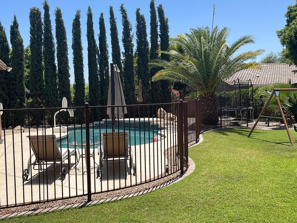 Open floor planLush greeneryGrassy yardResort-style backyard