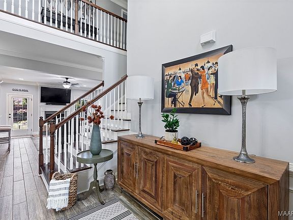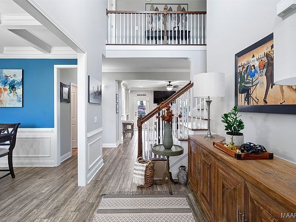 This beautifully maintained 5 bedroom, 3.5 bath home is nestled on a quiet, low-traffic street and surrounded by stunning landscape. Inside, a two-story foyer creates a grand and welcoming entrance. To your left is a formal dining room with elegant coffered ceilings. The main level is finished with wood-look porcelain tile flooring throughout all common spaces (bedroom excluded), offering both style and durability, perfect for pets and busy households. The spacious great room centers around a gas log fireplace and opens to the kitchen, separated by a breakfast bar. The kitchen boasts granite countertops, custom pull-out shelving, a new dishwasher, a smooth electric cooktop, and a wall-mounted self-cleaning oven, along with a bright breakfast nook framed by a bay window. Just off the living area is a guest suite with plush upgraded carpet and padding, a full bathroom, and access to the garage. The garage is a true two-car with epoxy floors, its own A/C, and pull-down access to floored storage. Upstairs, the primary suite impresses with vaulted ceilings accented by beams, a deep walk-in closet, and a spa-inspired ensuite with double sinks, a garden tub, a separate walk-in shower, and a private water closet. Bedrooms three and four are connected by a Jack-and-Jill bath, each with its own sink and toilet but sharing a central shower room. At the opposite end of the hall is the fifth bedroom with an oversized closet, plus additional floored attic storage accessible from the hallway. Outside, you’ll enjoy a fenced backyard with dual gates, low-maintenance rubber mulch, custom built planters, and a 10’x12’ insulated workshop with A/C and 120V/240V power—ideal for a workshop, hobby space, or s/he shed. An underground sprinkler system, maintained weed prevention service, and southern-facing backyard ensure your lawn looks beautiful year-round. Major updates include a new roof (2025), exterior paint and window caulking (2024), new HVAC (2019), new dishwasher (2023).