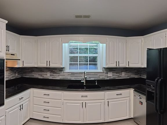 Refinished kitchen cabinets with a modern, updated look