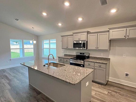 ***MOVE IN READY!!!*** CONVENIENTLY LOCATED TO NAVY FEDERAL, UWF AND ALL THE SHOPPING NEEDED FOR YOUR EVERYDAY NEEDS. THE 1425 PLAN IS A 3 BEDROOM 2 BATH THAT IS SURE TO IMPRESS YOU FROM THE TIME YOU ENTER INTO THE HOME THROUGH THE FOYER. THE ENTIRE HOME HAS LUXURY VINYL PLANK FLOORING THROUGHOUT WITH CARPET IN THE BEDROOMS ONLY. AS YOU LEAVE THE FOYER, YOU ARE GREETED BY THE MASSIVE OPEN FLOOR PLAN. THE GIANT FAMILY ROOM HAS A CEILING FAN. THERE IS A SINGLE FRENCH DOOR THAT OPENS ONTO A 15 X 13 COVERED PATIO THAT IS PERFECT FOR A MORNING CUP OF COFFEE OR ENTERTAINING ON THE WEEKEND. THE KITCHEN IS OPEN TO THE FAMILY ROOM AND CONTAINS STAINLESS STEEL APPLIANCES, WHITE SOLID WOOD SHAKER STYLE CABINETS AND A COUNTER HEIGHT BAR WITH GRANITE COUNTER TOPS. OFF OF THE KITCHEN, THERE IS A LAUNDRY ROOM THAT LEADS TO A 2 CAR GARAGE THAT HAS A GARAGE DOOR OPENER. THE MASTER BEDROOM IS OFF OF THE FAMILY ROOM AND HAS A CEILING FAN AND BOXED CEILING. THE MASTER BEDROOM OPENS UP TO THE MASTER BATH THAT HAS A DOUBLE VANITY, WALK-IN CLOSET AND SHOWER/ TUB COMBO. THE ADDITIONAL BEDROOMS ARE IN A SEPARATE HALLWAY AND HAVE AMPLE CLOSET SPACE. BOTH SPARE BEDROOMS SHARE A BATH THAT CONTAINS A SINGLE VANITY AND SHOWER/ TUB COMBO.