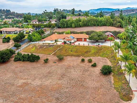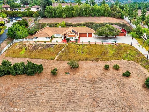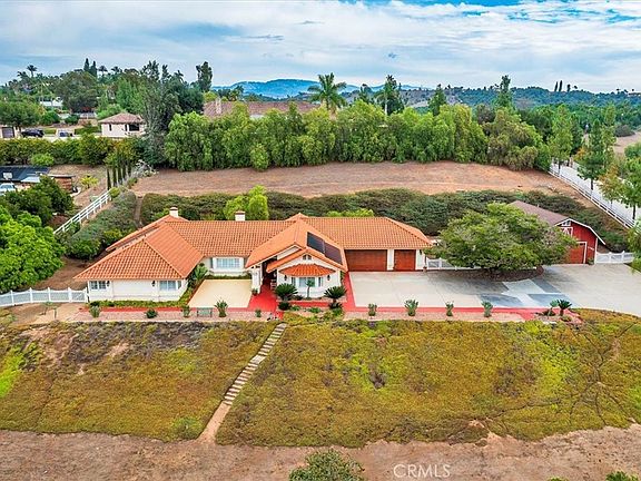 Discover the embodiment of elegant living in this stunning custom contractor's residence located in the heart of Fallbrook, CA. PAID for solar (newer system), Large Barn with bathroom. Views and location, location, location. As you approach, you’ll be greeted by an oversized solid wood front door that sets the tone for the exquisite craftsmanship found within. Step into the formal living room and dining room, perfect for hosting gatherings or enjoying quiet moments of reflection. The breakfast nook offers a cozy spot to savor your morning coffee, while the coffee/wet bar adds a touch of sophistication for entertaining guests. The heart of the home is the spacious step-down Family Room, featuring a striking wood beam ceiling and a custom fireplace that creates a warm and inviting atmosphere. Natural light floods the space through custom bay windows, complete with built-in seating and storage, making it an ideal spot to unwind. The meticulously designed primary suite boasts a custom beehive fireplace, dual closets, and an ensuite bathroom that includes a separate jacuzzi bathtub, walk-in shower, and large vanity with dual sinks. With an oversized laundry room and ceiling fans throughout, this custom designed home combines luxury with practicality. Enjoy the tranquility of the microclimate in the surrounding Fallbrook area and lush agricultural environment, ensuring a clean and serene living experience. Plenty of room for a second home, horse facilities, ADU or courts. Don’t miss the opportunity to make this exceptional property your own, where every detail has been thoughtfully considered for a refined lifestyle. Pride of ownership shows through this beautifully crafted home.