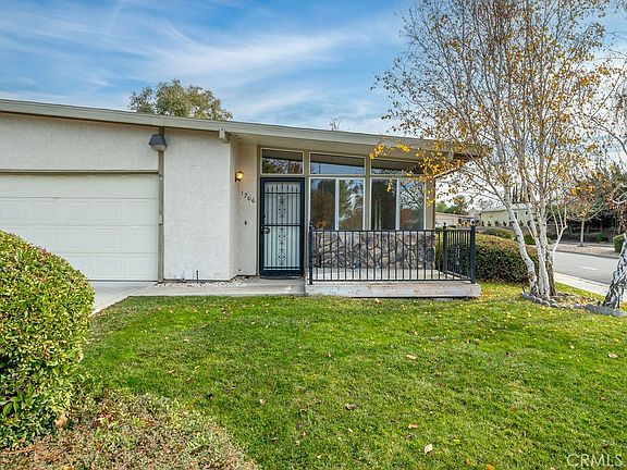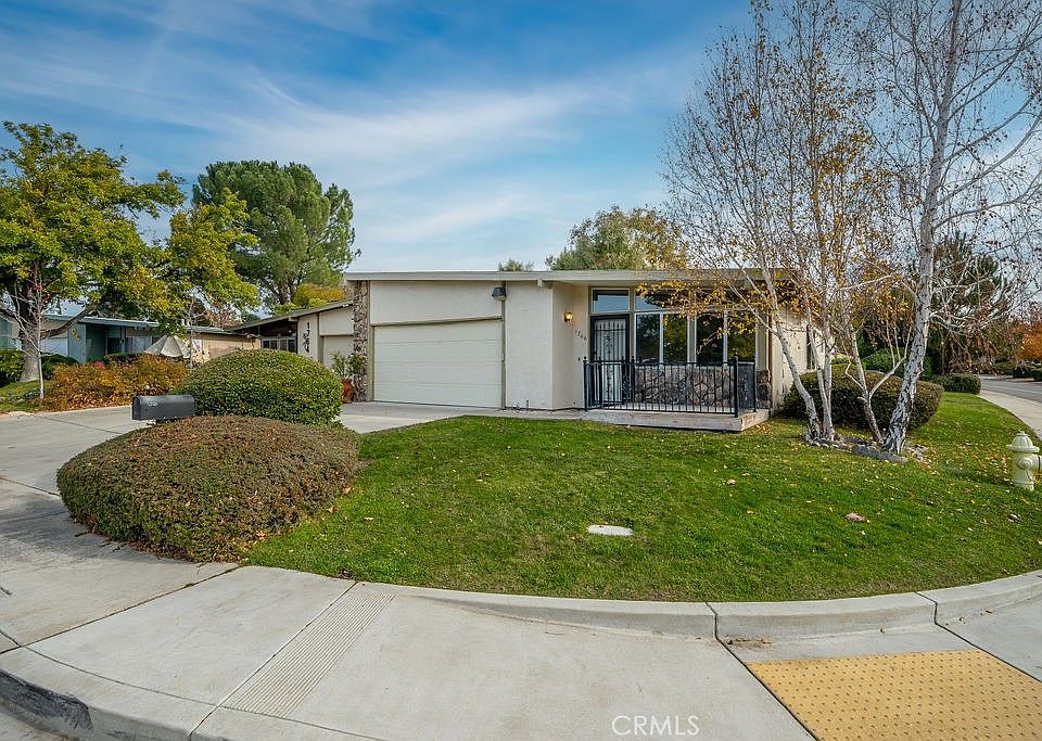 Really nice corner lot, +/- 5,000 SF, 2 bed/2 bath Sierra Bonita home, 55+ community, +/- 1,165 SF. Back in early 90's home was added onto, via permit with City of Paso Robles, making model slightly larger than when built. Home has new carpet, new vinyl plank flooring, new paint, new dishwasher and microwave and various new lighting fixtures throughout. This model has a living room and large additional room on opposite side of home with sliding glass door to back yard. Stove is under two years old and HVAC is approximately three years old. Front yard has a nice sitting deck next to the birch trees. Lawns and shrubs wrap around the side and a side gate (all new fence on South side) leads to backyard. The rear yard has a covered cement patio, flat lawn area with pavers and a tiered hillside ready for a fun garden. Two car garage has many built in cabinets and a mezzanine storage above. Can show home at any time.