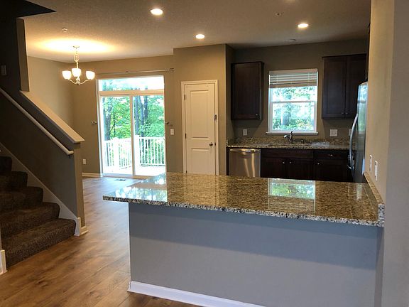 Beautiful and incredibly spacious townhome for rent! Built in 2018 with lots of upgrades, wonderful wooded view, and quick access to the interstate, shopping, and the hospital. Large open kitchen with SS appliances and balcony deck! Main floor living room also has an office area or playroom connected. Upstairs has three bedrooms, 2 baths, and laundry machines. Master has wooded view and the walk in closet connects to the master bath. Finished walk out basement with bathroom, perfect for a home office, media room, or spare bedroom. Grass and wooded back yard. Cats and small dogs allowed (additional $75 pet fee per month for one pet, $45 fee/month for each additional pet). Responsive and local landlords. One year lease minimum. Owner pays HOA fee which includes snow removal, lawn care, and garbage. Tenant responsible for all other utilities. Applicant criteria includes credit score of 640 or higher and income of 3x rent.