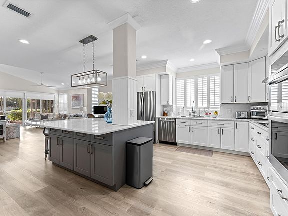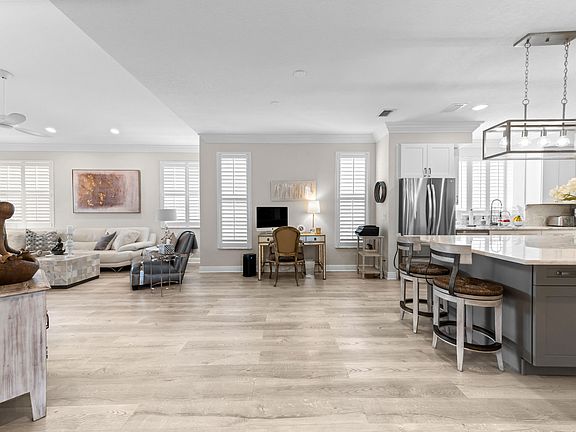 Beautifully renovated, newly furnished 3bed 2.5bath single-family home with direct golf-course views. The main level features a bright, open kitchen-living area with an oversized kitchen island, flooded with natural light, creating an ideal space for cooking and entertaining. The updated primary suite is conveniently located on the first floor. A large screened-in patio extends the living space, providing the perfect spot to enjoy golf-course sunsets, with room for a small pool. Upstairs, two comfortable bedrooms share a Jack-and-Jill bath. Additional features include impact glass, plantation shutters, and an expanded garage. The HOA takes care of it all; lawn care, exterior maintenance, roof maintenance, cable & 24-hour gated security. Minutes from I-95. Register for Open House Sunday!