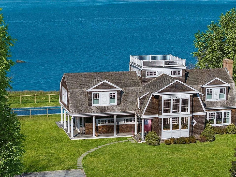 Welcome to Everward Bluff, an exquisite waterfront residence nestled on the former site of the Alfred H. Cosden "Eastward" Estate, boasting unparalleled privacy and stunning, unobstructed vistas of the Long Island Sound. With 150' +/- ft of private beach front, there are breath-taking water views from every room. Crafted with meticulous attention to detail by a reputable builder, this custom 4/5 bedrooms, 4.5 bathroom, Nantucket-style home offers modern elegance and expansive living spaces across over two acres of secluded grounds. Upon entry, a grand 2-story foyer welcomes you with a sweeping staircase and oversized windows framing picturesque park-like views. Designed for seamless entertaining, the first floor features an open-plan layout blending living, dining, and kitchen areas. The chef's kitchen boasts top-of-the-line Viking appliances, custom cabinetry, and granite countertops, while a separate butler's pantry offers additional storage and prep space. French doors in the living and dining areas seamlessly integrate indoor and outdoor living, opening to a wrap-around porch overlooking a pristine gunite pool, sunlit gardens, and glorious water views with spectacular sunsets. Upstairs, the primary suite offers a private deck with panoramic water views, complemented by a luxurious Italian-tiled shower in the ensuite bathroom. Off the primary bedroom is a wonderful room that could be used as a gym, laundry room, or easily converted to an additional bedroom. Two additional bedrooms, each with ensuite bathrooms and scenic water views, provide comfort and serenity. The larger of these bedrooms has a wood-burning fireplace and its own private deck. Additional amenities include a wood-burning fireplace, natural gas, 3-zone central air, a security system, central vacuum system, 2nd floor laundry room, and a bright third-floor attic space with a staircase leading to a widow's walk offering breathtaking 360-degree vistas. Everward Bluff epitomizes coastal luxury living, combining timeless design with unmatched tranquility and natural beauty.