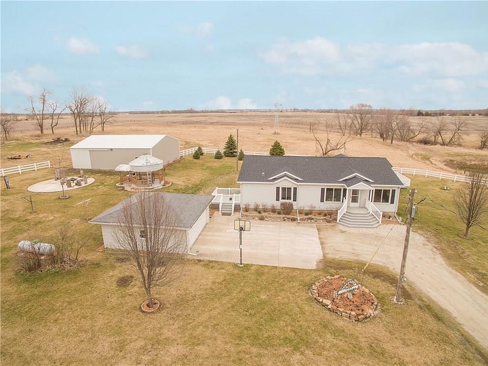 Amazing ranch style home with 2200 sq ft of finish, a full basement and a stocked pond all on 14 fenced acres m/l! This great home has 2x6 construction and features a large living room with vaulted ceilings and picture windows with wonderful country views. The kitchen has newer SS appliances and opens to the dining area and sitting room. Down the hall, find two good size bedrooms sharing a full bath. Double doors lead to the master suite boasting a large walk-in closet and private bath with double vanity and soaking tub. Head through the mud room to the 2 car garage, gazebo, and 40x50 pole barn. The walk-out full sized basement has a nicely updated 3/4 bath and unlimited possibilities. Some of the updates include new windows, sliders, roof, water heater and storm door. Horse enthusiasts and hobby farmers welcome! 13 Mo HWA Platinum Home Warranty included.