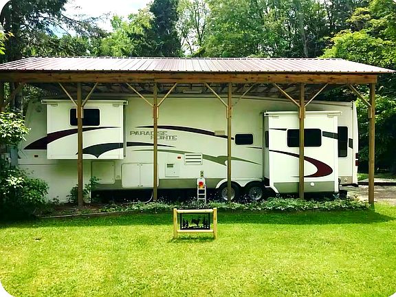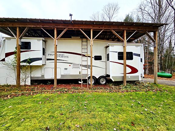 Location and Improvements is what this lot offers. You can enjoy a wooded setting of your own that is very close to the Unique Waterfront Village of Curtis Mi. Step onto this property and just relax, with a place to sleep offering all the conveniences you need. Camper is hooked up to a septic system and has well water and electric too. The 2021 40 x 20 metal roof structure with a deck will protect the camper or allow for you to frame in a house. Previously used as a vacation rental this place is set up to just come and enjoy. Included are 2 sheds for storage, so you can stop packing every time you head North. Highline internet is here, on this year-round rd. located so close to many inland lakes, rivers, trails, hunting land and all the beauty we seek in the Upper Peninsula of Mi. +36' Fifth Wheel RV in good condition