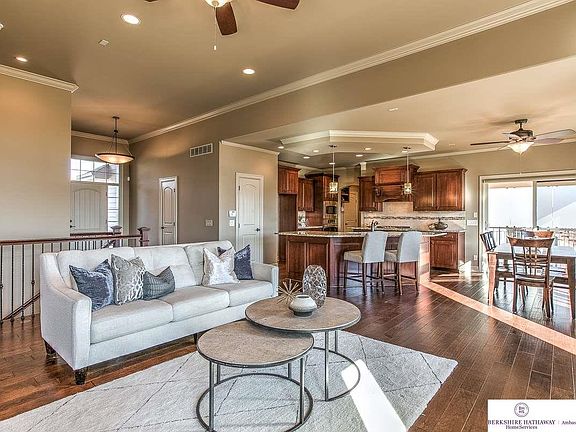 Live a life of luxury in this exceptional walk-out ranch,nestled on a prime lot in the Elkhorn School District!Fall in love the moment you step through the front door & feel the warmth of the spacious main floor & quality craftsmanship/superior finishes! Imagine cold winter nights cuddled up in front of the stone fireplace while the soup simmers in the chef's dream kitchen w/ eat-in dinette,granite counters,custom cabinets & oversized island or relax after a hard day at work in the master suite w/ spa-like bath & walk-in tile shower!Host huge parties in the expansive LL w/ rockstar bar or in the fully fenced backyard w/ stone patio, covered deck & luscious,professional landscaping!Other features include zoned heating/cooling,main floor office or 5th potential bed,an abundance of storage,tall ceilings,upgrades galore plus close proximity to your daily life! The impressive details speak for themselves & you certainly can't build this today at this price,a true value!