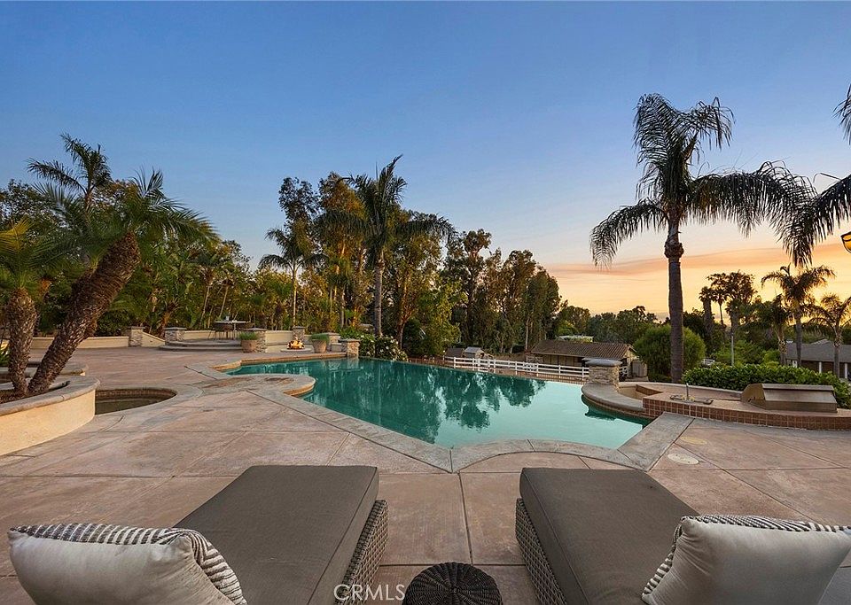 It’s often said that no home is perfect—but this extraordinary estate proves otherwise. Nestled at the end of a serene cul-de-sac behind private gates, this custom single-story residence redefines luxury living with an effortless blend of sophistication, comfort, and unparalleled design. Every detail has been masterfully curated to offer an elevated lifestyle beyond compare. From the moment you step through the grand foyer, you are greeted by soaring ceilings, expansive walls of glass, and a flood of natural light. With sweeping sunset vistas and nearly a full acre of impeccably landscaped, fully usable grounds, this home offers a rare sense of privacy, tranquility & space. The open-concept layout flows gracefully from the formal living and dining areas into a gourmet kitchen and an expansive family room, designed for both grand entertaining and intimate gatherings. Two elegant fireplaces enhance the ambiance, while 10-foot sliding glass doors open wide to create a seamless indoor/outdoor living experience that is simply breathtaking. Designed with thoughtful separation and privacy in mind, the home features three distinct bedroom wings and a private office. The primary suite is a sanctuary overlooking the estate’s most spectacular views. Complete with a fireplace and lavish spa-inspired bath boasting a walk-in open shower, dual vanities, and two custom-designed closets—what an indulgent retreat! Upstairs, a hidden gem awaits—a versatile game room with its own wet bar, built-in entertainment center, and full bath, perfect for relaxing or entertaining in style. Outside, the resort-caliber amenities are endless. A stunning infinity-edge pool with a swim-up bar anchors the outdoor space, complemented by a built-in BBQ island, a bubbling spa, and expansive sun-drenched patios. As evening falls, gather around the fire pit under a starlit sky and revel in the atmosphere of your own private five-star resort. Rolling green lawns, vibrant landscaping, and thoughtfully placed planters lead you to a secluded garden sanctuary perched just above the home—complete with raised beds for vegetables or flowers and a variety of fruit trees to enjoy year-round. To the side of the long private driveway, a charming barn and corral offer endless possibilities—ideal for housing animals, additional vehicles, or conversion into a luxurious guesthouse or ADU. This is more than a home; it’s a legacy estate that offers the very best in California luxury living.