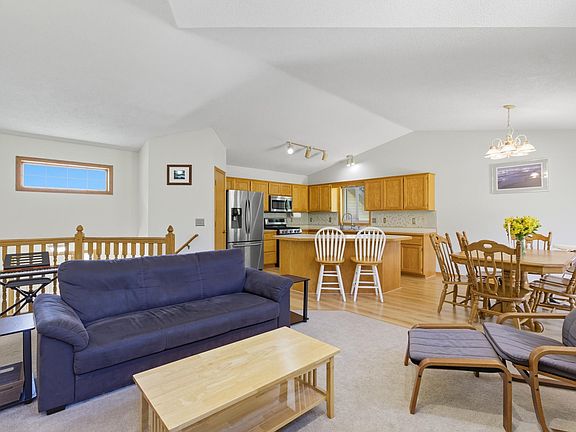 Welcome to this beautifully maintained split-entry home set on over half an acre in a desirable neighborhood just outside of town. Step inside to a bright, vaulted living room featuring a cozy gas fireplace and an open layout that flows into the dining area and kitchen with a handy pantry. The home offers 3 bedrooms and 2 baths, including a primary suite with a walk-in closet. Enjoy additional living space in the finished lower-level great room—perfect for gatherings or movie nights. Outside, relax or entertain on the deck overlooking the spacious yard. Recent updates include a new roof (2022) and a new driveway apron (2022). A 3-stall garage provides plenty of space for vehicles and storage. A wonderful place to call home with a peaceful setting and close-to-town convenience!