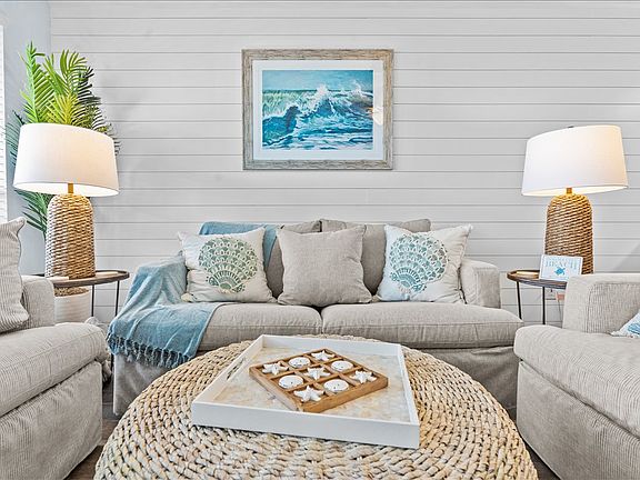 This beach condo is located on the second floor of a quiet low-rise complex that is located directly across the beach from public beach access number 72. Our complex includes a pool for your enjoyment and has been freshly renovated with a new green space to include grilling area, pickleball court, and a new pool house. This unit has two bedrooms and a private bunk room. The master bedroom boasts a luxurious king size bed, 55 inch smart tv, a large balcony that connects to the second bedrooms balcony, large walk in closet, and private master bathroom. The second bedroom has a beautiful and luxurious queen size bed, 50 in tv with Roku, and large balcony that connects to the master bedrooms balcony. Just outside in the hallway you'll find a full size bathroom. The private bunk room is located just off the living area and has two twin over full size bunks plus 40in smart tv. The living room sofa pulls out into a queen size sleeper sofa as well. The living room also boasts a 65in smart tv! The kitchen is fully equipped with full size fridge/freezer, stove/oven, microwave, and dishwasher as well as being fully stocked with pots, pans, glasses, dishes, coffee maker, etc! In the hallway you'll find a double stack washer/dryer. On the front patio you'll find you can relax in the Adirondack rocking chairs, or on the back patio (accessed through the bedrooms) you'll find 6 Adirondack chairs you can relax in! We have also provided beach chairs, umbrellas beach toys, floats and a wagon to make your trips to the beach easier! (located on the front patio in the storage bin.) Our complex is located on the desirable and quiet west end of PCB in the Laguna beach area. We are just minutes to several local staples and attractions! 5 minutes to Thomas donuts & pizza and the popular carrousel market, 7 minutes to frank brown park, 7 minutes to popular shopping complex- pier park, and we are centrally located close to new attractions like top golf, Dolly Partons pirate voyage dinner and show, Duplin winery, and several popular restaurants.