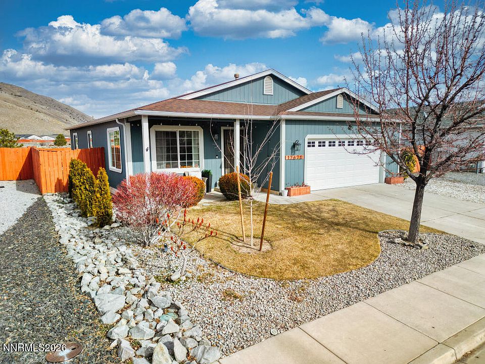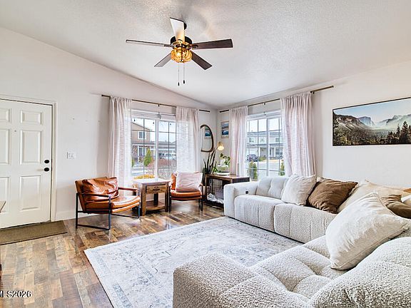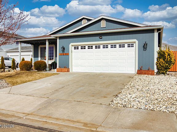 Enjoy beautiful mountain views and stylish updates throughout this thoughtfully refreshed home. The kitchen and bathrooms feature tasteful upgrades, complemented by new flooring, updated interior and exterior lighting, modern ceiling fans, a Bosch dishwasher, and a new 50-gallon water heater. A smart garage door and opener adds everyday convenience. The backyard has been designed with both comfort and ease in mind. Spacious new deck leads to pavers and a gazebo, creating welcoming spaces for relaxing or entertaining. Raised planters add charm and functionality, while the low-maintenance landscaping allows for effortless upkeep. Located near BLM land with access to trails and parks, this home offers a wonderful balance of updated interiors, inviting outdoor living, and proximity to Northern Nevada's natural beauty.