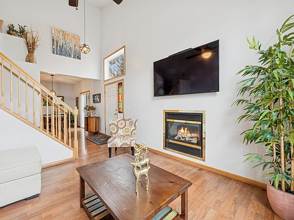 Great Location! This home features an open-concept floor plan with a stunning two-story vaulted ceiling and a cozy gas-burning fireplace in the living room. The spacious kitchen includes a newer refrigerator and flows into an informal dining area and a convenient half bath on the main floor. Upstairs, you'll find a large master bedroom, a second bedroom, a versatile loft space, and a full bathroom complete with a separate shower and a relaxing whirlpool tub. Additional updates include a newer washer and dryer, a new sink in the lower-level bathroom, and modern light fixtures throughout.