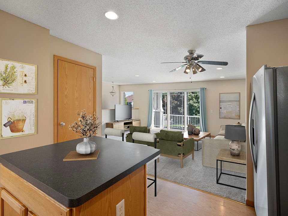 Move right in and enjoy a wonderful home with BRAND NEW carpeting throughout! This two-bedroom, two-bathroom home features an open-concept main floor, perfect for entertaining. The kitchen is the heart of the home, with a center island, stainless steel appliances, and a gas range, all looking out onto the backyard's serene greenspace. Enjoy your meals in the eat-in dining area. Enjoy the outdoors from every angle. The front deck is the perfect spot for your morning coffee, while the back patio is ideal for unwinding as the sun sets. The upper level has a spacious primary bedroom with separate closets and a walk-through to the full bathroom, which has dual sinks, a separate tub, and a shower. The upstairs laundry provides added convenience for both bedrooms. The lower level walks out to a patio overlooking a private pond and a lush greenspace with no direct neighbors behind you. The home’s location is ideal, with easy access to highways, parks, shopping, and dining. Schedule your tour today!