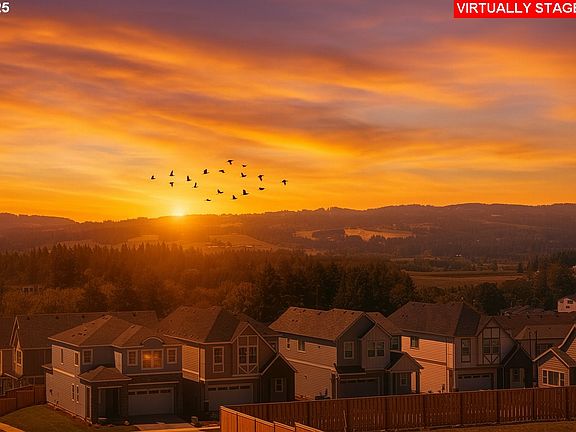 Exceptional Calistoga Home with Daylight Bonus Room and Southern Views! Explore the unique charm of our Calistoga Home at The Reserve, a rare gem featuring a Daylight walk-out bonus room. The daylight bonus room, featuring 8-foot ceilings and a walk-out patio to the fenced yard, serves as a versatile space, ideal for an office, TV room, gathering room, or hobby room. Enjoy the covered deck off the dining/living room on the main floor. The home offering serene views of the green trees area to the South and sunsets to the west. The kitchen is a focal point with a gorgeous large quartz island and a functional L-shaped design. Never worry about storage space again with the generous pantry, keeping your kitchen organized and clutter-free. The Calistoga floor plan includes a wall oven, microwave, and a gas 5-burner cooktop with a hood for plenty of enjoyment. Indulge in the spa-like primary bath with a soak tub and shower, featuring dual sinks. The primary bedroom includes a spacious walk-in closet, and the convenient laundry room upstairs comes with linen storage. The Vineyard community offers numerous amenities, including walking and biking trails, nearby shopping at Progress Ridge, and easy access to major freeways. Don't miss the chance to call this amazing Calistoga home yours!