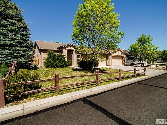 Welcome to 17675 Boulder Springs Court, a move in ready home located in Cold Springs NV. This exquisite home offers a harmonious blend of luxury, comfort, and breathtaking natural surroundings. Situated in a desirable neighborhood, this property presents an incredible opportunity for those seeking an upscale living experience. Step inside and prepare to be impressed by the sophisticated interior spaces that have been thoughtfully designed with both style and functionality in mind., The expansive floor plan spans across 2458 square feet, offering ample room for relaxation and entertainment. Former Canyon Hills "Jeffery" model home. Upgraded finishes shows throughout this 3 bedroom plus office single-level residence. Beautifully and fully landscaped on a large quarter-acre plus lot. The house is equipped with a large gourmet kitchen featuring granite countertops, stainless steel appliances and upgraded Squire Nutmeg cherry wood cabinetry. Ten foot ceilings throughout along with the two gas fireplaces add to the warmth and comfort of this home. The outdoor living area is equally impressive, showcasing a covered patio where you can unwind while enjoying the views of the surrounding mountains and the meticulously maintained backyard. Imagine hosting barbecues, sipping your morning coffee, or stargazing in this tranquil setting. Located in Cold Springs, you'll enjoy the best of both worlds - a serene retreat from the hustle and bustle of the city, yet with easy access to a variety of amenities. Outdoor enthusiasts will appreciate the proximity to hiking trails, parks, and recreational areas, allowing for endless adventures in nature.