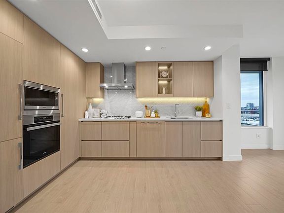 Corner unitFloor-to-ceiling windowsPremium flooringModern gourmet kitchenGas stoveMiele appliancesQuartz counters