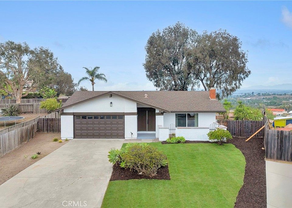 Welcome to 1768 Henderson Ct, a beautifully updated 4-bedroom, 2-bathroom home tucked away at the end of a quiet cul-de-sac in Vista. Set on an expansive 12,632 sq ft lot, this property offers sweeping mountain and city light views you can enjoy year-round. Step inside to an open-concept floor plan where the brand-new kitchen shines with quartz countertops, stainless steel appliances, and a seamless flow to the dining area. A cozy family room with a beautiful fireplace adds warmth and character, making it the perfect space to gather and relax. Fresh interior and exterior paint, new laminate flooring, and thoughtfully updated landscaping create a modern, move-in ready feel. Both bathrooms have been completely remodeled—featuring new tile, vanities, a soaking tub in the guest bath, and a glass-enclosed shower in the primary suite. Comfort is also top of mind with a brand-new HVAC system, including central AC, furnace, and ducting. This turnkey property combines style, comfort, and an exceptional setting—don’t miss your chance to call it home!