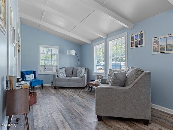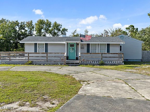 Larger than it looks remodeled home ready for you to enjoy-MUST SEE INSIDE! Newer floors/kitchen/baths/paint. Vaulted ceiling in living/dining/kitchen area for more volume. Split bedroom plan for privacy with principal bedroom separate from others. Bonus room/guest room with private entrance. LOTS of decking all around home for entertaining and relaxing. Fenced back yard for kids/pets/celebrations. No city taxes and flood insurance not required. West Carteret Water. From CC Env Health Dept:''No septic permit nor paperwork to be located for this property. Built in 1966 for 3 bedrooms''Croatan/Broad Creek Middle schools-best in the state! Close to Cherry Point and the beach. Offered unfurnished but most furnishings offered for purchase.
