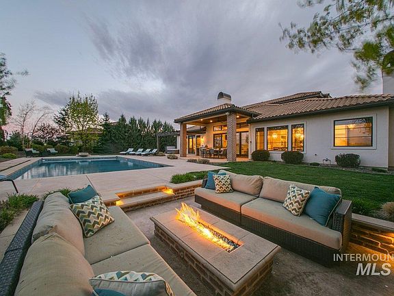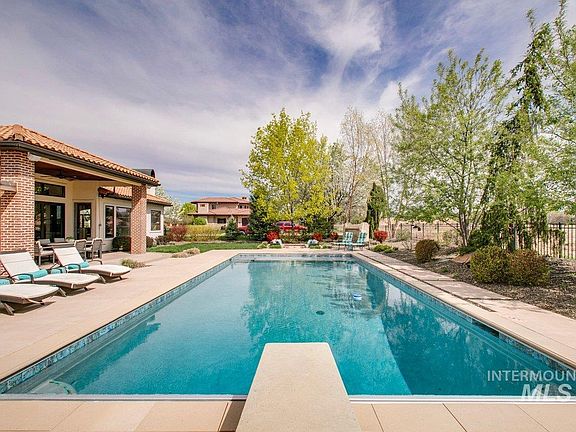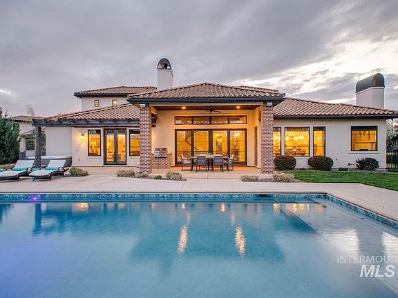 Close in Custom Eagle Home located minutes from downtown Eagle. This Estate Home is situated on nearly 1/2 acre and features private pool and hot tub. The East facing backyard is an oasis and offers great views of the Boise Front. Custom thoughtful finishes throughout make this European Masterpiece a pleasure to come home too. Wolf Sub Zero Appliances, Built in Refrigerator, Wine Cellar, Hearth room and great room off the kitchen. Large center kitchen island creates for great entertaining space. Primary suite is oversized with two walk in closets, large shower, soaking tub and his and her vanities. Guest Suite on main level w/separate entrance and features beautiful finishes. This home is spectacular and can not be missed. Large Dog Run with synthetic grass, outside sunken fireplace area and stone waterfall feature in the backyard. The 1300+ sq. ft. garage is super deep and features shelving and finished floor.