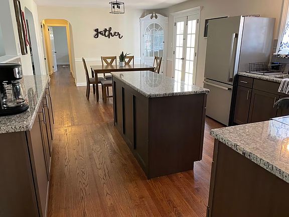 This home features a bright, open-concept layout with tasteful furnishings and modern finishes throughout. The spacious living areas flow seamlessly into a fully equipped kitchen offering granite countertops, stainless steel appliances, ample cabinetry, and a large center island perfect for cooking, entertaining, or everyday living.