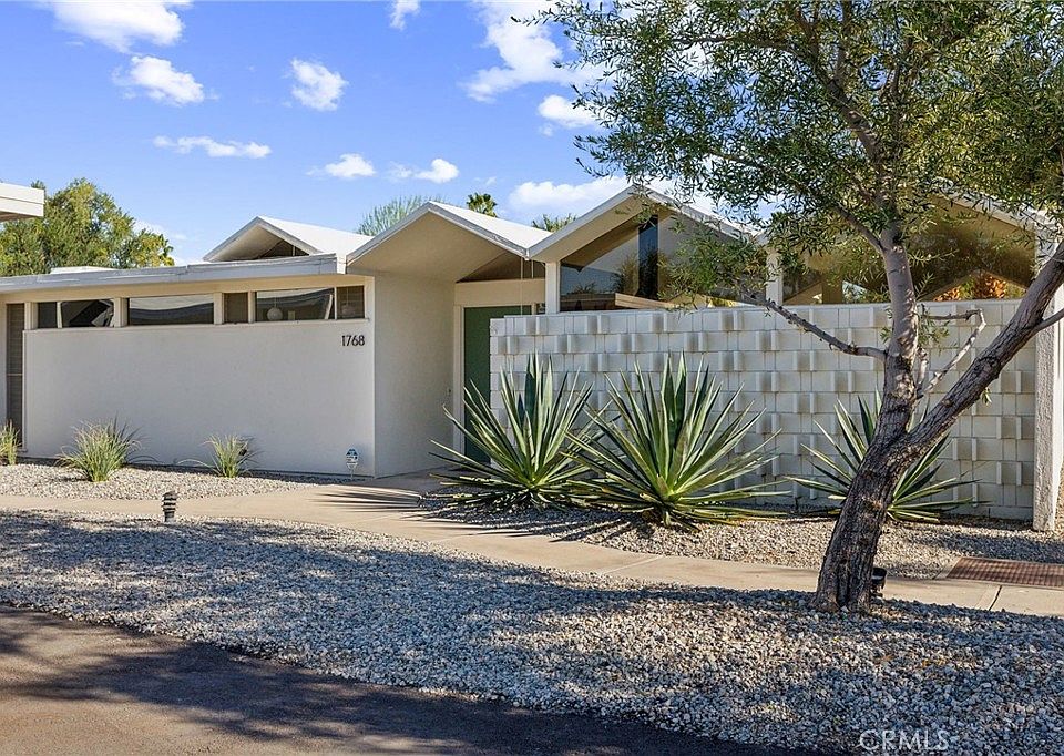 PARK Imperial South, 3.5-acre resort community built in 1961 in the south end of Palm Springs. A Berry Berkus designed mid-century modern community, best known for its unique folded plate rooflines and decorative concrete block design. Granted historical designation owners can apply under the Mills Act for significant property tax reduction. The signature steel hood fan, globe lighting, jalousie windows, terrazzo walkway and sculptural concrete block design, are just a few of the key mid-century design features. The 30-unit community features resort like grounds with mature palm and olive trees, all oriented around a large, gorgeous pool and spa. This unit has unobstructed views of the San Jacinto mountains from the patio and side kitchen window. This unit has a Southwest facing backyard providing natural light throughout the day. Inside this open concept unit, the original terrazzo runway leads from the entry, through the living room to the private walled patio. Floor to ceiling glass connects the social spaces to the large private patio. This unit features a primary bedroom, a 2nd bedroom which opens onto the patio with a mountain view. Open space concept for entertaining and a dining room off the living room that was originally designed as a convertible third bedroom/Den. The unit comes with one carport space directly out your front door. This updated home provides a modern update, building upon the unique mid-century modern design, for you to enjoy a piece of modernist history as well as the best of current mid-century Modern day Palm Springs. Unit is TURNKEY!
