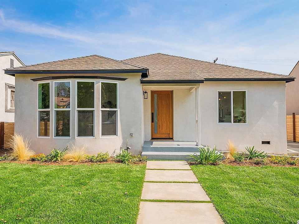Beautifully renovated home on highly desired Fairfax Avenue! From the hustle and bustle of the main street, the property is set back with trees and a remote-controlled motorized gate for your privacy. Step inside the home to marvel at the abundance of natural light and appreciate all the practical modern upgrades and stylish added touches. The spacious kitchen has been fully updated, boasting all new stainless steel Samsung appliances (stove, refrigerator, range hood and dishwasher) and quartzite countertops and backsplash, brand new cabinetry with eye-catching matte black hardware, new faucets and sinks. The primary bedroom features an en-suite bathroom, a roomy walk-in closet, and a French door leading to the backyard. Both bathrooms have been renovated with new double sink vanities, new porcelain and ceramic tiles, new mirrors, toilets, hardware, and all new lighting and plumbing fixtures. The primary bath has a walk in shower with new glass doors and gorgeous floor-to-ceiling tiling inside, which extends behind the vanity. All new lighting fixtures have been added throughout, including new scones, chandeliers, decorative and recessed lights. All new walnut interior doors, new dual pane vinyl windows, and all new engineered wood flooring throughout as well. A brand new HVAC system with smart NEST thermostat, new electrical wiring and panel upgrade, new plumbing and fixtures, fresh interior/exterior paint, and a new roof round out the upgrades. The laundry area has new side