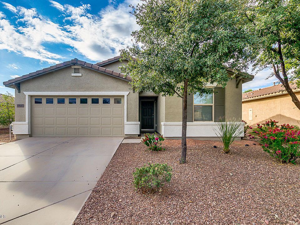 **RV Gate** New paint inside and Outside! This is the one! Amazing property in Surprise with charming curb appeal, low maintenance front yard, and 2 car garage it's exactly what you're looking for! Step inside this beauty to discover neutral tones, tile flooring in high traffic areas, carpet in all the right places, and beautiful light fixtures. Lovely kitchen is equipped matching black appliances, oak cabinets, breakfast bar, and pantry. Master bedroom has immaculate bath with double sinks, separate tub & step-in shower, as well as a walk-in closet. Large backyard offers a full length covered patio, fire pit w/paver seating area. RV Gate. Don't let this amazing opportunity pass you by! Call & book a showing today.