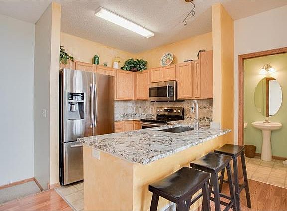 Available June 1, 2023. Newer townhouse built in 2005. Lower level entrance with access to garage, laundry area, and large storage space. The main level with high ceilings, an open kitchen with ample cabinet, granite counter top, new stainless steel appliances. Living room with a gas fireplace and access to a large deck, and dining area. One bedroom and 3/4 bath on main level. The upper level has a large master bedroom with a full private bathroom and walk-in closet, a large loft for a home office. Great location with easy access to everything: shopping, highway, trails, etc. Osseo school district. Living Rm Main 14x12 Dining Rm Main 12x8 Kitchen Main 7x5 Bedroom 1 Upper 17x12 Bedroom 2 Main 14x11 Loft Upper 12x8 Foyer Lower 20x7 Deck Main 14x7 Bathrooms, Total: 2 Full: 1 3/4: 1 Security deposit: one month rent. Tenants pay gas and electric only. Water/Sewer, Recycle, and Trash collection are included in rent. Association takes care of lawn and snow removal. Lease terms: 12 months. Requirements: 1, income, at least 3 times of rent (last year's W2 and most recent 2 pay stubs); 2, no eviction; 3, credit score is greater than 625. 4, no criminal history. Non-refundable application fee: $50 per adult. Please call/email Shawn for more info and/or setup a showing. Tenants pay gas and electric only.
