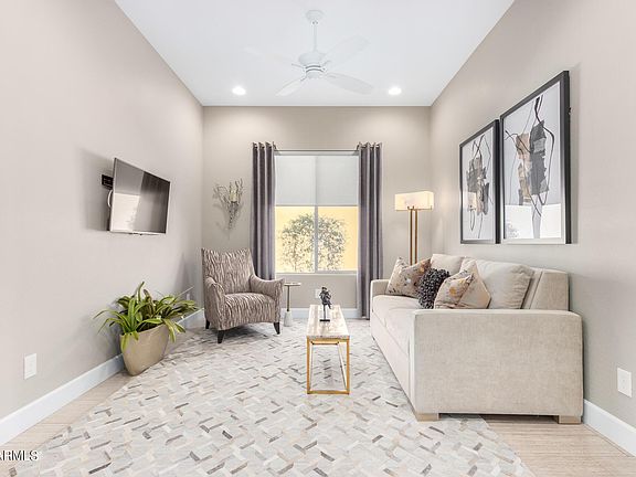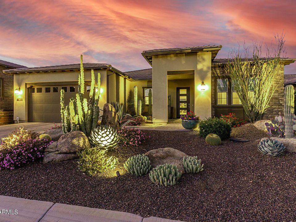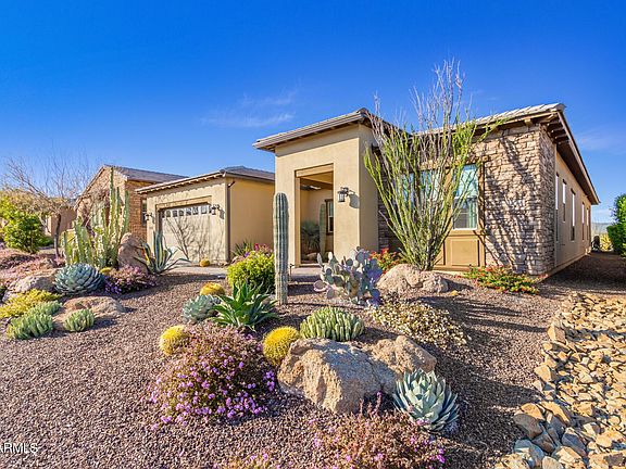Beautiful home on PREMIUM VIEW LOT backing to the TONTO NATIONAL FOREST! Live the life of LUXURY and soak up breathtaking MOUNTAIN VIEWS from the moment you walk in the front door. Spectacular 3 bed, 3.5 bath property showcasing refined desert landscape & stone accented facade. Captivating interior boasts bountiful natural light, high ceilings, tile floors, & neutral palette. Discover the spacious great room w/dazzling light fixtures, a delightful fireplace, & huge sliding doors leading to the back patio. The incredible chef's kitchen offers plenty cabinets & see-through cupboards w/crown moulding, wall oven, SS appliances, wine fridge, granite counters, a large walk-in pantry, stylish backsplash, & a center island with a breakfast bar. Bright main suite features back patio access, designer lighting and custom draperies, elegant master bath with soaking tub. 2 additional guest bedrooms ensuite bathrooms. Versatile den can be used as an office or sitting area, whatever you choose! You'll love hosting fun gatherings in the beautiful backyard with covered patio, outdoor kitchen, & outstanding mountain views!! This gem won't last long! Trilogy at Verde River is a Resort Style community featuring something for everyone! Golf, tennis, pickle ball, bocce ball, heated lap pool and swimming pool, hot tub, fitness center, demonstration kitchen and a 7.5 acre dog park. The community center has casual and fine dining, luxury spa and events center. Trilogy at Verde River is adjacent to the Tonto National Forest and is situated in the middle of miles and miles of hiking and biking trails. Live like you're on vacation!