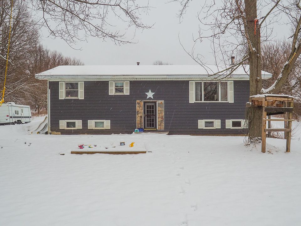 Wonderful country home on 2.92 acres with a few apple trees and wild berry bushes out back to pluck from. Only a few miles from convenient downtown Otsego, yet has a nice countryside feel. This home features 6 sliding doors for lots of natural light, large living room, master suite. Basement is a spacious walkout. Also featured is a wrap around deck and 30x30 pole barn with two garage doors. Newer roof, newer deck and new well.