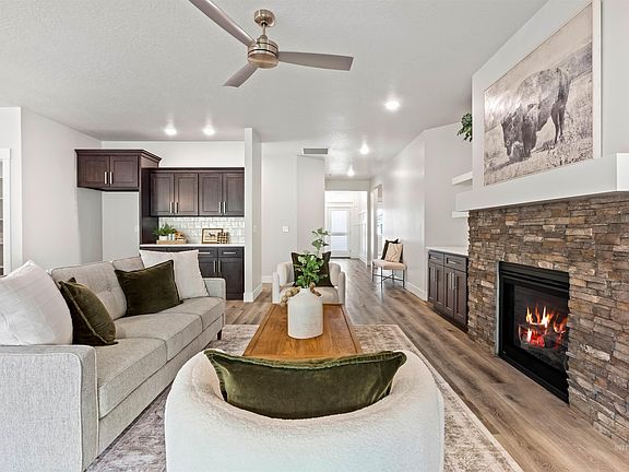 YOUR LUCKY DAY! PRICED TO MOVE! Discover elevated living in this beautifully designed 3-bedroom, 2-bath home with a spacious office—ideal for remote work or creative pursuits. The open-concept kitchen showcases quartz countertops, a gas range, and premium vinyl plank flooring, seamlessly connecting to a bright living area with a cozy fireplace and custom built-ins. Two generous guest bedrooms share a stylish full bath featuring quartz counters, a tiled tub/shower, and luxury tile flooring. The private primary suite offers dual vanities, a fully tiled step-in shower, and quartz finishes with thoughtful designer details throughoutPerfectly located near freeway access, Albertsons Marketplace, the YMCA, and Meridian’s top shopping and dining, this home blends convenience with sophistication. HOA covers front and back lawn care, making this a truly low-maintenance, turnkey lifestyle. Don’t miss the chance to make this exceptional property your own!