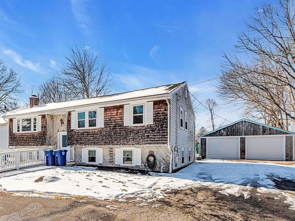 Back on market due to buyer finance! Your 2nd chance at this Classic Split Ranch w/open concept living room flowing into cathedral ceilinged dining area/sun interior. Laminate flooring in recently redone kitchen (Cabinets, counters, flooring, dishwasher, sink, disposal all replaced 2020) spreads to sliding glass doors to deck. Entire 2nd level painted w/in last 10 days in Sherwin Williams modern hues. 3 closeted bedrooms boast solid oak hardwoods up, finished basement offers one large room with a smaller room off to one side, & additional finished bath. BONUS basemenr room needs only some cosmetics in and has working fireplace! Possibilities abound for family members in transition! Windows, doors & glass sliders by NewPro, oil tank&furnace 2022, roof 2014, and new liner/pump for the INGROUND POOL w/quaint pool house. Window trim replaced/repainted last week! Freshly landscaped under the snow! Oh AND New Doors in the 4 CAR GARAGE!