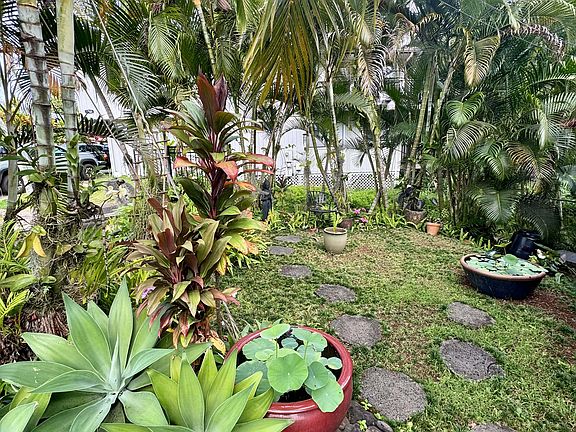 Adorable Single-Story Treehouse with Private Garden Valley Views<br>tucked at the end of a quiet double cul-de-sac. This very well-maintained, single-level home opens out directly onto a lush, private valley with tropical flowers and a canopy of trees.<br>A charming orchid and waterlily garden greets you at the entry, visible from the living, dining, and kitchen areas. Tile floors and vaulted ceilings create a bright, airy interior. Recent updates include a newer roof, appliances, countertops, sliding vinyl doors off the bedrooms, new ceiling fans and lighting for modern comfort. Very clean & neat and easy access washer, dryer and hot water heater. <br>Both bedrooms open onto a wrap-around deck that is perched right in the treetops.<br>There are mature, fruit-bearing citrus and avocado trees just steps from the kitchen. Garage and under-deck areas provide extra space for lanai, storage, gardening, or workshop needs—with ample room to customize. Also ready for use is a large fenced dog yard, and additional sunny level grass area for play or a customized spa area. <br>This treehouse is just minutes from Kealia Beach, the Kapaa coastal trail, and a short drive to the shops and restaurants of downtown Kapaa, offering a rare blend of privacy and convenience.<br>It's a true gem in the Pacific.<br><br>20 minutes to LIH and Wilcox Medical, 20 min to Kilauea and 30 min to Hanalei Bay. <br>Easy home to move into, and low maintenance yard care required.
