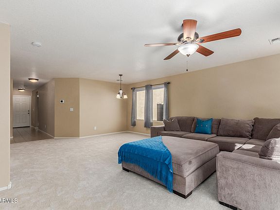 $5000 seller concession towards Buyers Closing costs or Loan buydown. This home has all you want! Features include, Tankless hot water heater, 2 year old Runtru Trane AC with Nest, and Ring camera. The interior showcases new carpeting and padding for added comfort, tile in all the right places, and fresh two-tone paint. Your well-appointed kitchen, comes equipped a pantry and refrigerator. The serene main bedroom offers a walk-in closet, a large bathroom and split floorplan for added privacy. The easy-maintenance backyard is ready for your personal touch. It is already plumbed with a sprinkler system for grass or laydown artificial. Across the street is a lovely park. In the desirable Desert Oasis at Surprise is a community pool! Don't wait to see this home, it will sell fast!