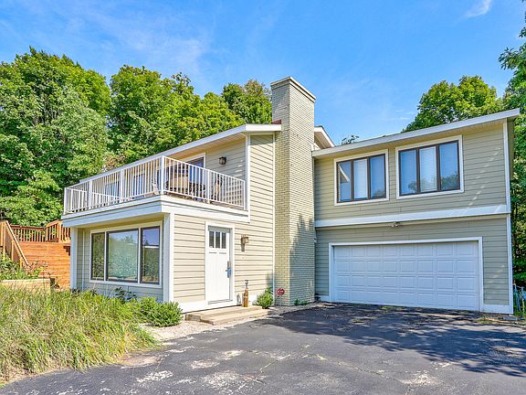 STEPS AWAY FROM GREAT SUNSETS AND RESORT LIKE LIVING WITH A PRIVATE ASSOCIATION ON LAKE MICHIGAN! Located on reputable North Shore Estates road, This Completely remodeled over 2500 sq. ft. home is move in ready. Relax & unwind in your spacious, private Master Retreat with great views of woods & water. Enjoy the stunning views of Lake Michigan; breathtaking sunsets and the beach is just seconds away (access is across the street). Enjoy an open floor plan, vaulted tongue & groove wood ceilings, beautiful Brazilian hardwood floors, stone gas log fireplace in great room overlooking Lake Michigan. This home features Professional kitchen with white cabinets, Corian countertops, stainless appliances, Large Island, glass tile back splash & huge dining area with sliders to deck that overlooks