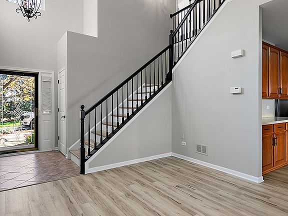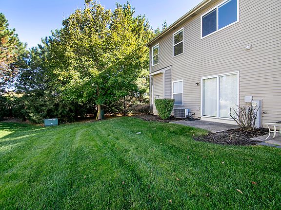 Welcome to this stylish and private end unit located in the highly desirable Willow Walk community! Step inside to discover vaulted ceilings and an abundance of natural light that enhance the open and airy feel of the main level. The spacious living room flows effortlessly into the family room, complete with a cozy fireplace-perfect for relaxing on cool evenings. The modern kitchen features beautiful cabinetry, granite countertops, a pantry, a convenient half bath, and an inviting dining area, creating the ideal space for entertaining or everyday living. Recent updates include fresh paint and new vinyl flooring throughout, adding a crisp and contemporary touch. Upstairs, you'll find three spacious bedrooms and a second-floor laundry room for added convenience. The primary suite offers vaulted ceilings, a walk-in closet, and a private full bath for a true retreat experience. This townhome is perfectly situated next to a peaceful wooded area, offering beautiful views, enhanced privacy, and a serene natural backdrop rarely found in similar homes. Enjoy outdoor living on the large rear patio, perfect for morning coffee, gatherings, or summer barbecues. Completing this exceptional home is a two-car garage and a prime central location close to shopping, dining, and major highways.