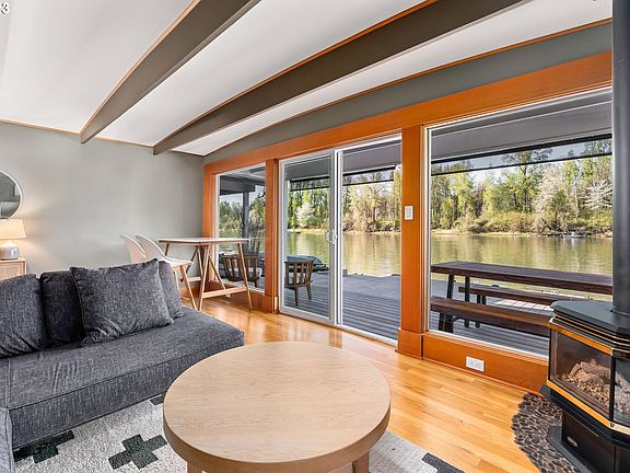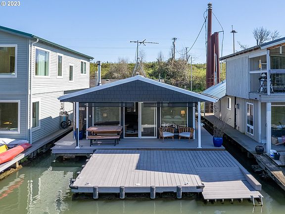 Welcome to EVERYDAY vacation! Float life: Peacefulness, serenity, sunsets, wildlife, swimming, fishing, boating, water sports, kayaking, dining al fresco, farm markets, Summer concerts across the street, Christmas Ships, and much more all just 15 miles for the city grind. House 31 is turnkey dialed and ready for Summer. This highly unique property feels like a luxury yacht cabin and sits sturdily on a very solid float w/ bonus swim float. Warm tongue & groove wood detailing, skylights, metal roof, loads of windows create an inspirational and highly unique dwelling that you must see to feel the difference of life on the river. Slip fee includes assigned parking. Garage spaces & storage units on waitlist. No AirBnb. Boat trailer storage available. All personal property in home including SUPS can convey.