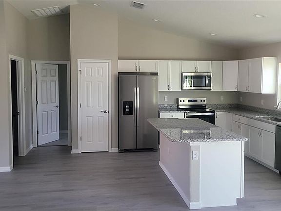 One or more photo(s) has been virtually staged. MOVE IN READY!! Beautiful new construction home! Luxury Plank Vinyl flooring throughout all living and common areas, tile in bathrooms, and carpet in the bedrooms. Open floor plan with dining area and eat-in kitchen, all done in neutral, pleasing colors. Inside laundry with W & D hook-ups. Walk-in closet in Master bedroom. Stainless steel appliance package in the kitchen. Cabinets are white shaker-style with light luxury granite countertops. Please see attached documents from Builder (Builders Contract Addendum & Warranty) Actual photos attached plus virtually staged model home photos for reference. *** Dunnellon Oaks neighborhood has BRAND NEW PAVED ROADS! and No HOAs!! This community is located off of Hwy 484 just 1 mile from the Florida Trail Pruitt Trailhead, minutes away from Rainbow River, and many other natural playgrounds! The adorable Cannon Farms is directly across the street offering seasonal activities. ***Inquire about our preferred lender deals! Builder offering to contribute to buyer’s closing costs or help with rate buy downs! We can be flexible to help our buyers get into a beautiful home!