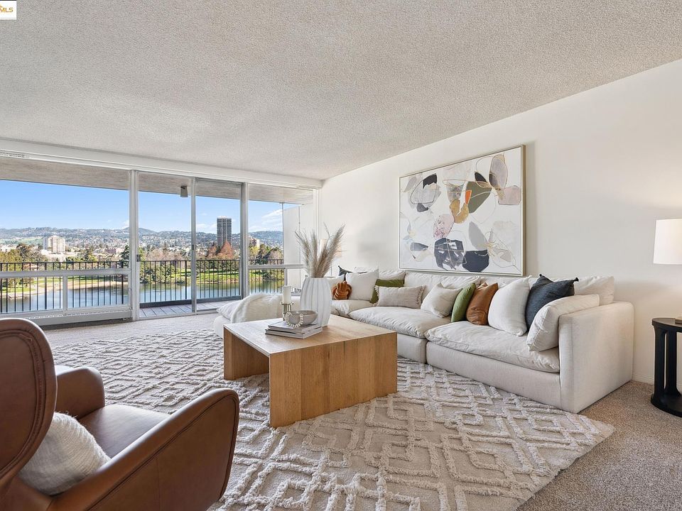 This spacious fifth floor CO-OP condo offers breathtaking, expansive views of Lake Merritt from every window, and from the long balcony that spans the length of the unit. The remodeled eat-in kitchen, fresh paint, new carpet, new modern light fixtures, and open living areas create a warm and inviting space to call home. Two spacious bedrooms have generous closets, and views, and there's ample hall closets as well. This luxe co-op unit includes one parking space, guest parking, bicycle storage, roof-top access. Water and heat included in dues. Also included are on-site management, maintenance & custodian staff, and 24-hr front desk concierge. $19M seismic retrofit in 2019. Enjoy walks around Lake Merritt, access near to BART, bus, restaurants, museum, and the farmers market. Truly an urban luxe lifestyle.
