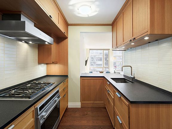 Impeccably finished interiors by renowned designer / architect Alan Wanzenberg pay extraordinary attention to detail. A gracious foyer opens to a sprawling sun-soaked great room with double-paned, floor-to-ceiling windows framing the Empire State Building. An open chef's kitchen is outfitted with leathered absolute black granite countertops, natural oak cabinetry and premium appliances from Wolf, Miele, Bosch and Sub-Zero including a 46-bottle wine refrigerator.