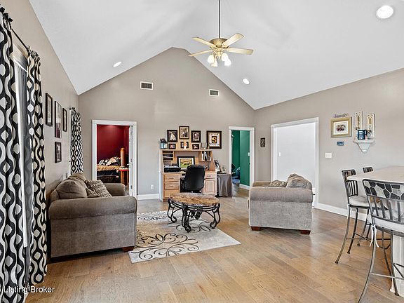 Welcome to this gorgeous 1 owner custom brick home located within a few miles of Leitchfield. Situated on approximately 3+/- acres (survey pending). This 3 possibly 4-bedroom 2.5 bath home features nearly 2300sqft of living space plus an oversized attached garage. Step inside to a grand foyer with formal dining to the left just off the kitchen (currently used as an extra living room area). The living room space boasts gorgeous cathedral ceilings and is open to the kitchen and dining area. The kitchen features abundant custom cabinet space and sports a breakfast bar and walk-in pantry. The primary bedroom is situated just off the living room, is highlighted by stunning tray ceiling and includes a primary bathroom with shower and soaker bathtub as well as a large walk-in closet with custom organizer. The spare bedrooms share and are connected by a Jack-N-Jill Bathroom. Upstairs features a large bonus room area with skylights that could be used as the 4th bedroom. This home is located close to Leitchfield-Grayson County Airport and within 10 minutes of Nolin Lake! Call today to schedule a showing of this knockout property.
