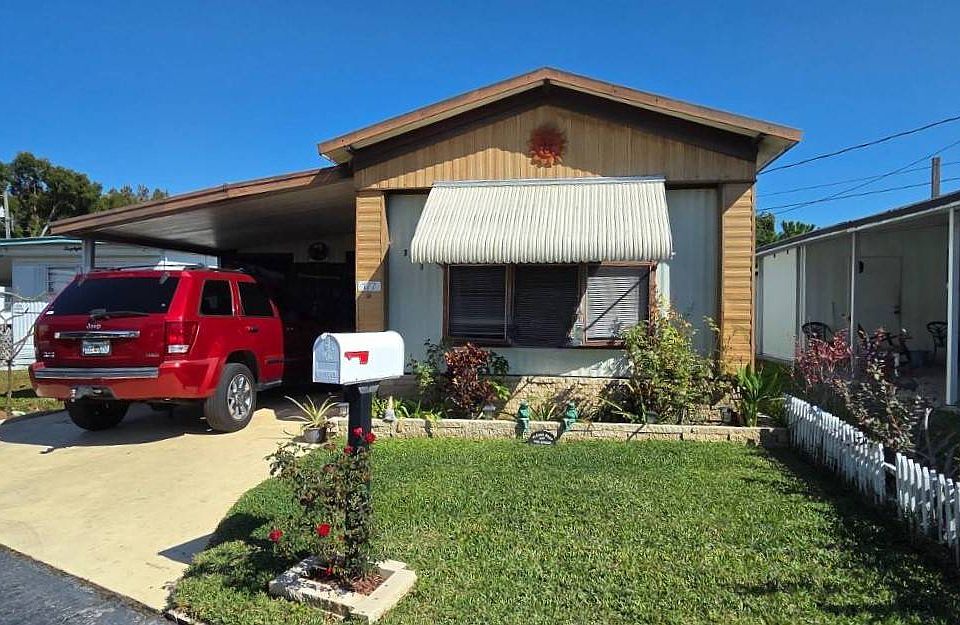 55+ community - This charming 1-bedroom, 1-bath home is located in a peaceful Lakeland neighborhood close to the beautiful Bonnet Springs Park (opened in 2022). The home is older but well-maintained, offering several meaningful updates, including a fully upgraded bathroom with all-new plumbing and a stunning new countertop. The primary bedroom is surprisingly spacious, comfortably fitting a queen-size bed with nightstands on both sides, plus a generous closet. The owner is currently installing custom kitchen countertops to elevate the kitchen's appeal. A key highlight of this property is the very large attached workshop, ideal for woodworking, hobbies, crafting, or additional storage. This home is on a lot lease, and the monthly fee is very low compared to similar 55+ communities, offering excellent affordability for the area. Amenities include a community building with planned parties and events, a horseshoe pit, and shuffleboard, lighted streets, and Pets are Welcome! Call today to schedule a showing. All listing information is deemed reliable but not guaranteed and should be independently verified through personal inspection by appropriate professionals. Our company does not and cannot guarantee or warrant the accuracy of this information or the condition of this property. Measurements are approximate. The buyer assumes full responsibility for obtaining all current rates of lot rent, fees, and pass-on costs. Additionally, the buyer is responsible for obtaining all rules, regulations, pet policies, etc., associated with the community, park, or home from the community/park manager. Our company is not responsible for quoting said fees or policies. Financing is available through 3rd party lenders. The sales price does not include tax, dealer fees, or administrative fees. Please contact the sales agent for additional information.