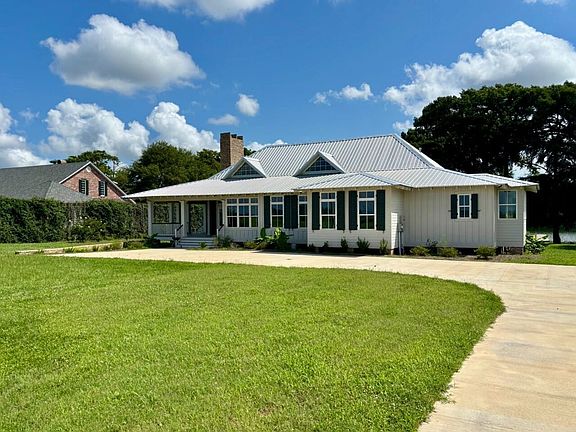 Beautiful new home on 150' of Lake Bruin. This is an airy modern home with old home charm. Home has 2628 sq. ft of heated and cooled area. It has fantastic light from fine windows all through. Top end appliances and features throughout. It has an open floor plan with a fine brick paved foyer, living area and kitchen. There are three big bedrooms with 3 full beautiful baths and one half bath. An office could also be the fourth bedroom. It has 3,574 sq. ft under roof with over 900 sq. ft in fine wrap around porches. Fireplace on porch has separate flue from inside fireplace. The lake front is landscaped and has a pier with a spacious boat slip. It has a 22KW Generac stand by generator for power outages.